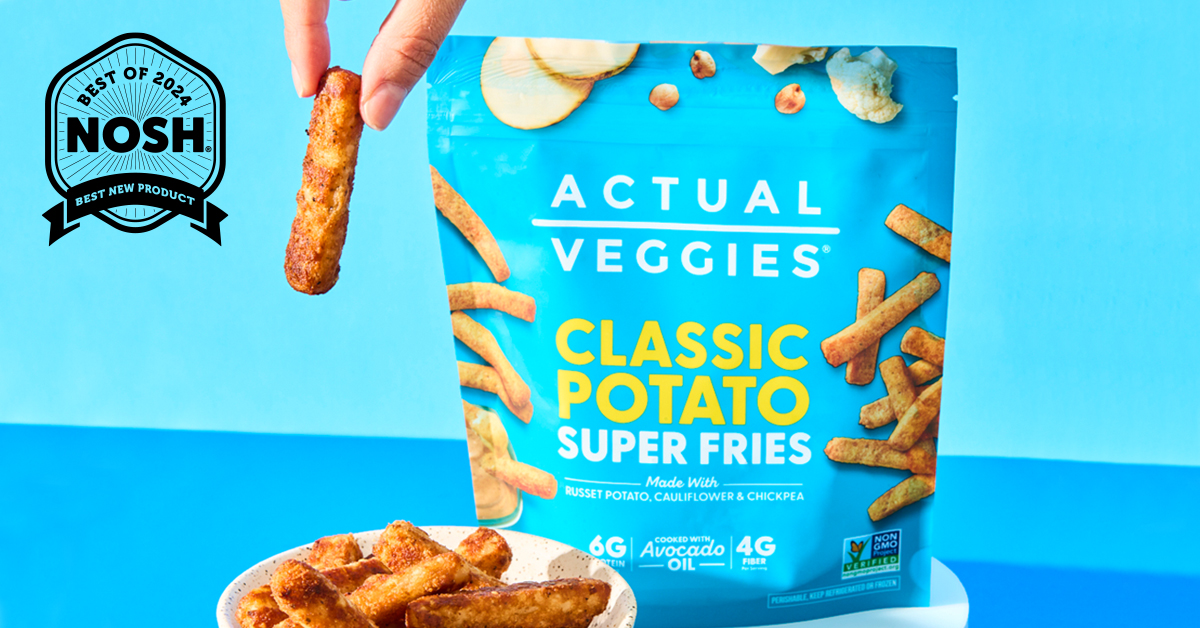 Name a better duo than burgers and fries. Actual Veggies, the purveyor of premium plant-based patties, expanded into the frozen fry segment this year with the debut of Actual Veggies Super Fries, made with potatoes plus chickpeas, cauliflower or carrot, pea protein, chia seeds, apple cider vinegar and avocado oil. Varieties include Classic Potato, Purple Sweet Potato and Sweet Potato.