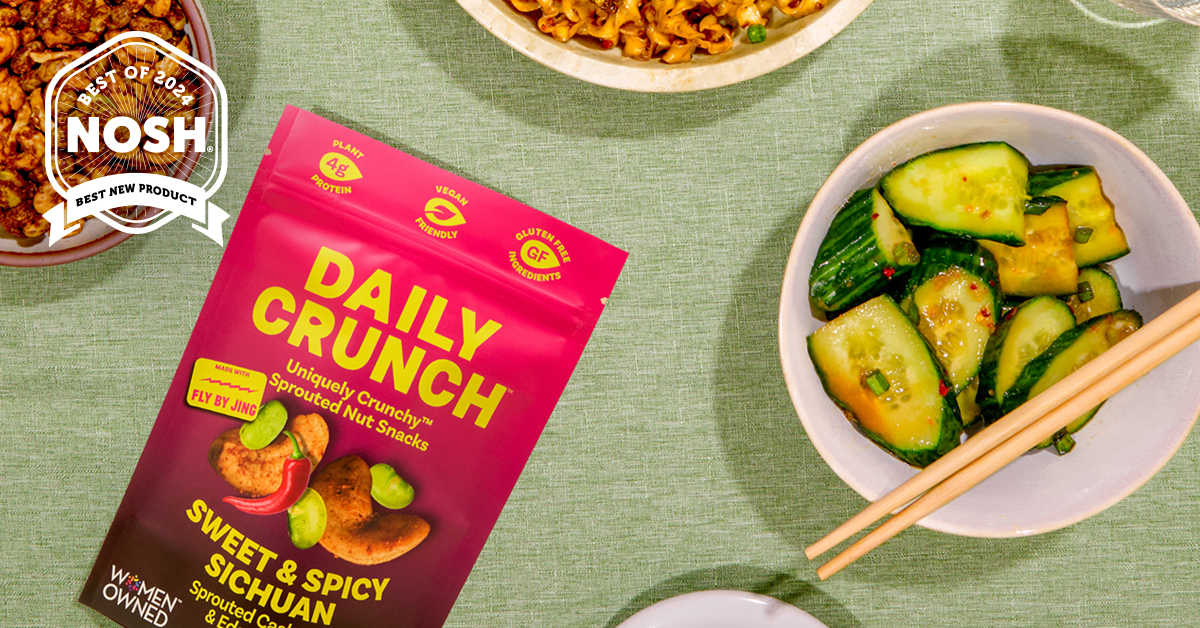 The founders of Daily Crunch and Fly By Jing planted the seeds of a partnership two years ago at Natural Products Expo West. The co-branded creation – Daily Crunch Sweet & Spicy Sichuan Sprouted Cashews & Edamame – debuted in October at Whole Foods Market and features Fly By Jing Mala Spice Mix, which has Sichuan chili pepper, coconut sugar, salt, garlic, mushroom powder and spices.