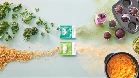 The new Enrichables line is launching with two nutrient-dense products — Kale & Fiber and Pea Protein — add one Enrichables packet to your favorite recipe to make your dishes more nutritious.