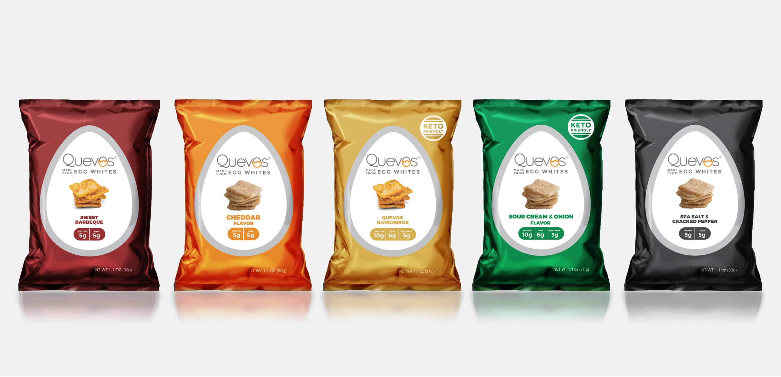 Quevos is the solution to smart snacking. Each bag is high in protein, low in carbs and filled with fiber. Quevos uses only clean, all-natural and gluten-free ingredients. The healthy fats come from avocado oil and chia seeds, and the low net carb count makes Quevos a top snacking choice for the Keto community. Quevos currently has five nutrient-dense flavors: Sea Salt & Cracked Pepper, Cheddar, Sweet BBQ, Sour Cream & Onion and Quevos Rancheros