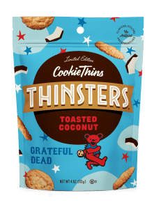 “Grateful Dead created a genre of music all their own by blending the ingredients of tradition, independence, and authenticity. THINSTERS strives for the same values, and we hope that doing so will bring people together over the joyful bite of a cookie,” said Kevin Joseph, VP marketing for THINSTERS. “This synergetic collaboration commemorates the Grateful Dead’s career and their impact on American music. Thank you to the whole Warner Music Artist Services group for making magic happen.”