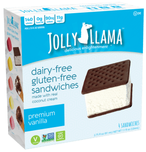 - Dairy-Free Gluten-Free Premium Vanilla Jolly Llama® Sandwich (nutritional details and ingredient list)