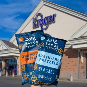 Family-owned grain free pretzel brand Savor by Suzie, known for its entire line of top 9 allergen friendly pretzel flavors, announces a launch in Kroger and CVS available in stores by end of September!