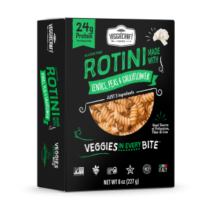 Cauliflower Rotini joins the Veggiecraft Farms line of veggie-based, gluten-free alternatives to traditional pastas, which are available in sweet potato and zucchini varieties and other classic pasta shapes like elbow, linguine, penne, and spaghetti. Each pasta is made with only three ingredients – lentils, peas and a vegetable of cauliflower, sweet potato, or zucchini. Veggiecraft Farms veggie pastas are good sources of protein and fiber, and are gluten-free, Non-GMO Project Verified, vegan, and Kosher.