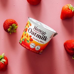 Nancy’s Oatmilk Non-Dairy Yogurt is available in Plain and Vanilla 24-ounce sizes, as well as a single-serve 5.3-ounce size in paper-based cups in Plain, Vanilla, Blueberry, Passionfruit Banana and the Nancy’s fan favorite, Strawberry Hibiscus.