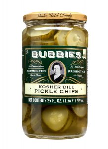 Recent Bubbies’ research found that consumers were cutting Bubbies’ whole Kosher Dill Pickles into chips for use in dishes like hamburgers, pasta salads, and grilled cheese sandwiches. “While the shelf-stable ‘pickle’ section is full of chips and spears, there were no options for a REAL fermented, refrigerated pickle chip,” said Chris Glab, Bubbies’ Chief Innovation Officer.