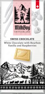 NEW YORK, N.Y.— Milkboy Swiss Chocolates will showcase its newest White Chocolate with Bourbon Vanilla and Raspberries bar at Natural Products Expo West from March 13-15 at the Anaheim Convention Center. From their Swiss Chalet-themed booth #N247 in the North Hall, Milkboy will also preview other upcoming seasonal chocolate flavors. The new White Chocolate bar joins a product line that includes other flavors like Finest Alpine Milk, Alpine Milk with Roasted Almonds, Alpine Milk with Crunchy Caramel and Sea Salt, White Chocolate with Bourbon Vanilla, Extra Dark 85% Cocoa, Finest 72% Dark Chocolate with Fresh Roasted Coffee, and Finest 72% Dark Chocolate with Crispy Mint.  All bars have a suggested retail price of $4.99.