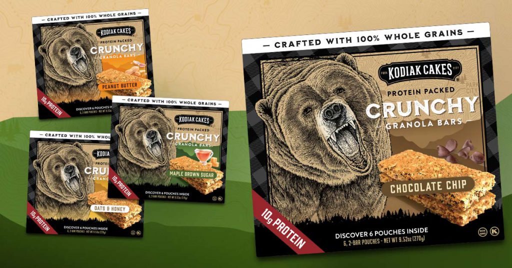 Kodiak Cakes will add a new line of Crunchy Granola Bars to its protein-enhanced portfolio, which also includes new breakfast innovations. The bars, which have 10g of protein per serving, will be sold in six-pouch multipacks for $4.99 each in Chocolate Chip, Maple & Brown Sugar, Peanut Butter and Oat & Honey flavors. The product will launch next month.