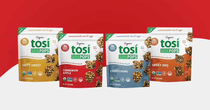 Organic bar maker Tosi is embracing the snackable bites format — along with savory flavors — with the debut of SuperPops, its first ever multi-serve format launch. Made with ancient grains and seeds, the snacks are available in Everything, Salty Sweet, Smoky BBQ and Cinnamon Apple flavors, and are sold on the brand’s website in 4-packs of 3 oz. bags for $24.