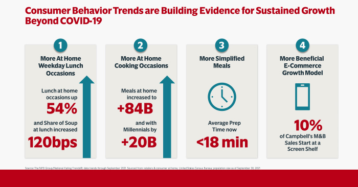 “While these issues have been extremely challenging and this has been an absolutely horrible situation across the world, this period has also accelerated several important areas of our strategic agenda, and has overall strengthened the position and relevance of our brands…” Clouse said. “For some, it represented a rediscovery of old favorites, but it also introduced our brands to millions of new, and importantly, younger consumers. It was a once in a generation moment, especially for our soup business, and the work we’ve done prior to the pandemic better positioned us to meet this moment fully for consumers, customers, and the company.”