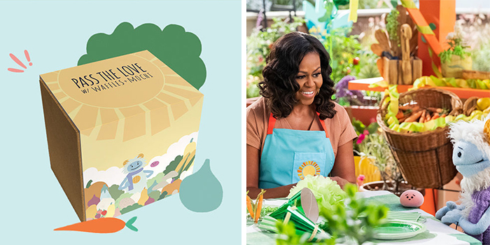 The campaign, featuring the former First Lady as well as characters from her upcoming Netflix series “Waffles + Mochi,” is aimed at raising awareness for food equity issues and providing one million Pass the Love branded meal boxes to families in food insecure communities across the country. Partners Blue Apron and Walmart will both work to fundraise for the meal box distributions, which will be sourced, shipped and assembled by foodservice company Genuine Foods and feature recipes and ingredients for three family meals.