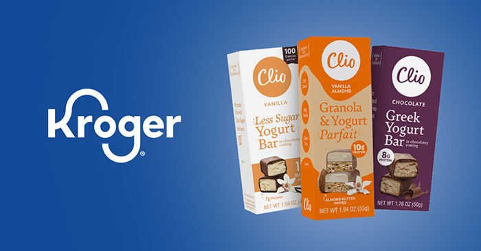 Greek yogurt bar brand Clio Snacks announced it has begun the roll out of three of its core SKUs to 1,200 Kroger stores nationwide. In addition to the new distribution, the refrigerated snack maker introduced three new flavors: Chocolate Greek Yogurt Bars, Vanilla Less Sugar Greek Yogurt Bars and Vanilla Almond Granola & Yogurt Parfait Bars.