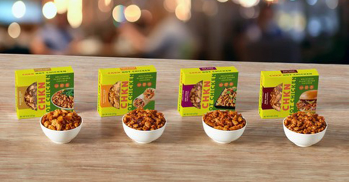 Four varieties of CHKN Not Chicken have been added to the frozen aisle of over 370 Sprouts Farmers Market stores nationwide. The plant-based chicken alternative is made with a pea protein base containing 20 grams of protein per serving and is available in Naked CHKN (original), Zen CHKN (Asian spices and ginger), Fiesta CHKN (Mexican spices and citrus) and BBQ CHKN (sweet and savory barbecue).