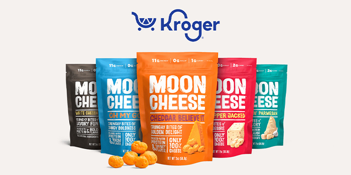 Moon Cheese has landed placement for its all four flavors — Cheddar Believe It, Garlickin’ Parmesan, White Chedda Black Peppa and Oh My Gouda — of its cheese snacks in 2 oz bags at 1,800 Kroger stores nationwide this month, the company reported.