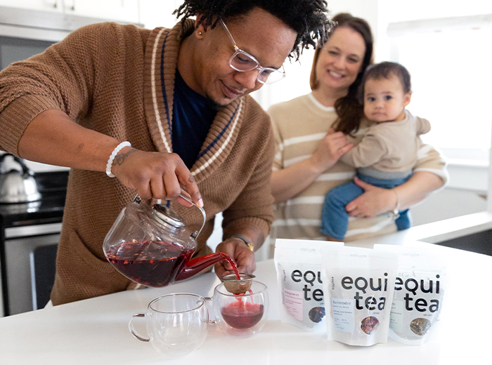After hitting “rock bottom,” the ritual of making and drinking tea became an integral part of Vennie’s recovery. That experience helped pave the way to launch Equitea. Later, when his son Jayden was diagnosed with ADHD, he again looked to tea as a tool for treating the mental health disorder.