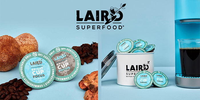 Plant-based food and beverage maker Laird Superfood introduced a new format to its portfolio with the goal of giving consumers a plastic-free approach to single-serve functional coffee. Today, the company announced the launch of Bright Cups, a proprietary Keurig-compatible pod format made from BPI-certified compostable materials and filled with Laird’s Focus Mushroom Coffee.