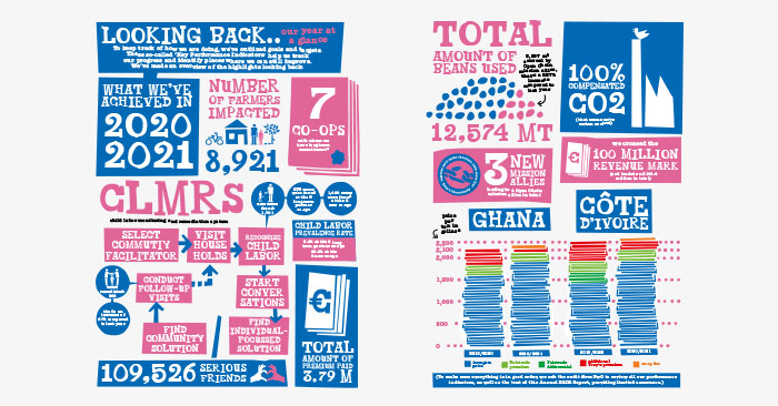 The company estimates that a farmer supported by a professional co-op should be able to produce 800 kilos of cocoa per hectare, yet most only produce between 30% to 40% of that. With the current farm gate price set at $1,088 per ton, Tony’s paid farmers an additional premium of $590 per ton during the 2019/20 growing season which is a combination of its FairTrade premium and an additional sum directly from Tony’s.