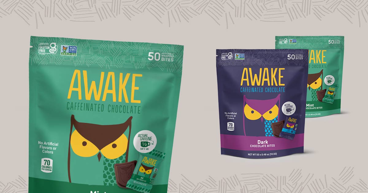 Confection brand AWAKE has rolled out revamped packaging for its product lineup ofCaramel Chocolate, Dark Chocolate, Milk Chocolate, Mint Dark Chocolate and Peanut Butter Chocolate caffeinated chocolates. The new packaging features bright, bold colors with each pouch containing 50 pieces of individually wrapped bites at an MSRP of $34.99.