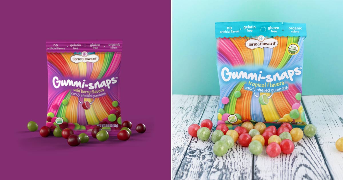 Torie & Howard released Gummi Snaps, a new low-sugar, organic candy. The brightly-colored candy shelled gummies, offered in Tropical and Wild Berry flavors, are available online and in-store nationwide for an MSRP of $3.99 per 3 oz. bag.