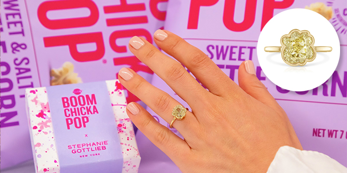 “Over the past few years, we’ve seen an increase in demand for custom, unexpected and personal engagement ring designs,” said Stephanie Gottlieb, in a press release. “Collaborating with Angie’s BOOMCHICKAPOP on this never-before-seen ring means bringing a touch of whimsy to a milestone moment in a couple’s life, and we can’t wait to be a part of that.”
