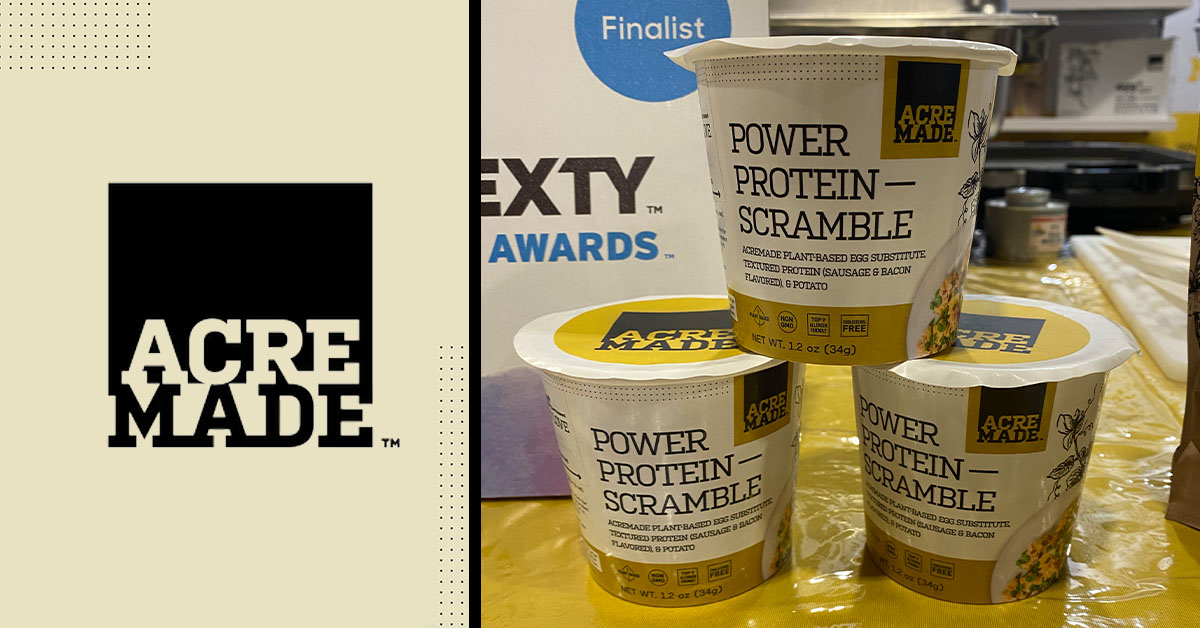 After launching its plant-based, egg protein substitute as a single-ingredient pack in retail last year, AcreMade (#4095) is looking to mix up a higher value scramble. The company debuted shelf-stable Protein Scramble cups this summer as a vehicle to drive trial for its vegan egg ingredient and ease consumers into the idea of converting from the chicken-sourced commodity.