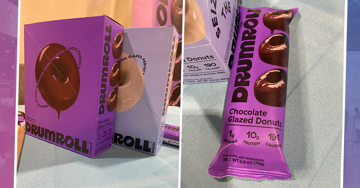 Plant-based donut snack maker Drumroll, formerly Greenhouse Foods, exhibited at this year’s show with a new name and look, but the same original product inside its pack. The company executed a full rebrand of its mini functional donut line in June to better align with the product’s purpose and better position itself to pop on the produce shelf.