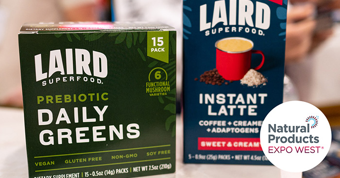 In conjunction with the rebrand, Laird Superfood expanded its broad portfolio of products with the addition of two new single-serve products: Sweet and Creamy Latte with Adaptogens and Prebiotic Daily Greens. The former combines a freeze-dried coffee blend with coconut-based creamer and a functional mushroom blend while the latter is a relaunched product that features a full serving of fruits and vegetables, prebiotic fiber and adaptogens.