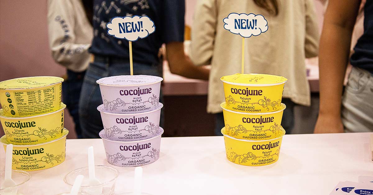 Cocojune released two new flavors of the brand’s cultured coconut yogurts: Mixed Berry and Passion Fruit. The single-serve, dairy-free yogurts come in plastic neutral 4-ounce containers and complement Cocojune’s four existing flavors: Pure Coconut, Lemon elderflower, Strawberry Rhubarb and Vanilla Chamomile. Cocojune also showed off its new kids pouches (Banana Strawberry, Mango Peach and Mixed Berry) as well as its line of Overnight Oats (Banana Cinnamon, Dark Chocolate, Mixed Berry and Vanilla Bean).