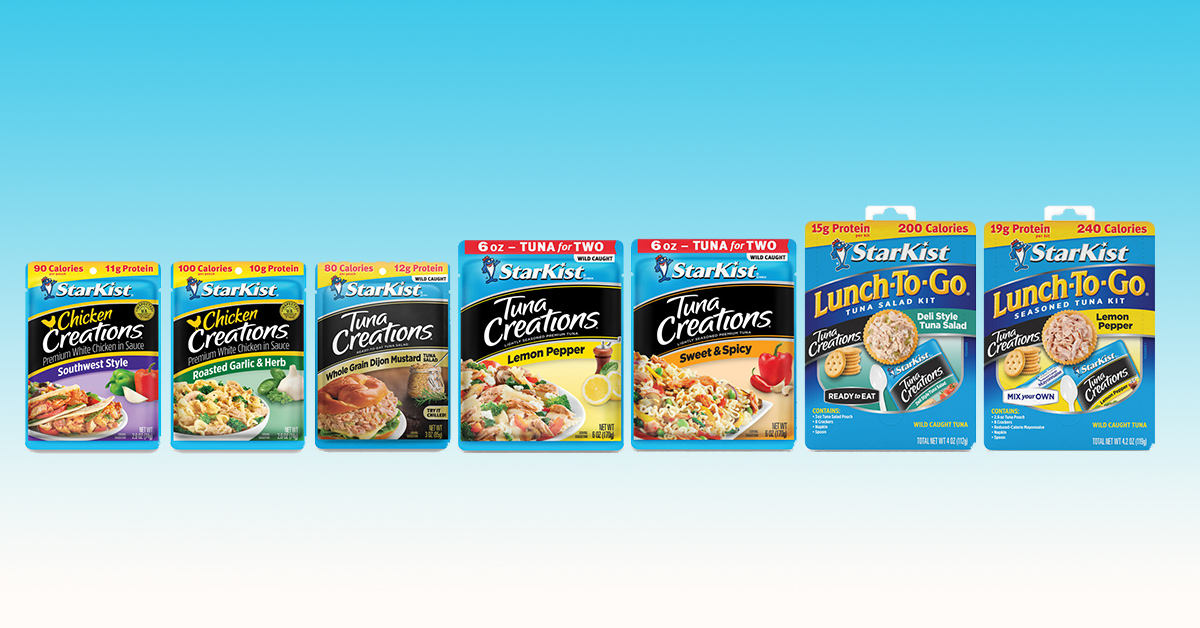 Starkist has launched two new protein pouch additions – Southwest Style 2.6 oz. Pouch and Roasted Garlic & Herb 2.6 oz. Pouch – as part of its Chicken Creations line. The former boasts 11 calories and has 90 calories while the latter contains 10 grams of protein and contains 100 calories. Both flavors are available at retailers nationwide for an SRP of $2.39.