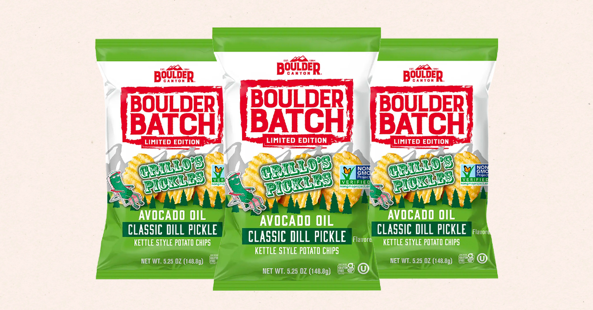 Thinking outside of the [pickle] jar, Boulder Canyon teamed up with Grillo’s Pickles to create its limited edition Classic Dill Pickle Flavored Kettle Style Potato Chip. The new collab marks the second time Grillo’s has partnered with Utz Brands to create a co-branded, pickle-flavored snack. The LTO is currently available in 5.25 oz. bags at retailers such as Whole Foods Market, Sprouts, Fresh Thyme and Better Health Market.