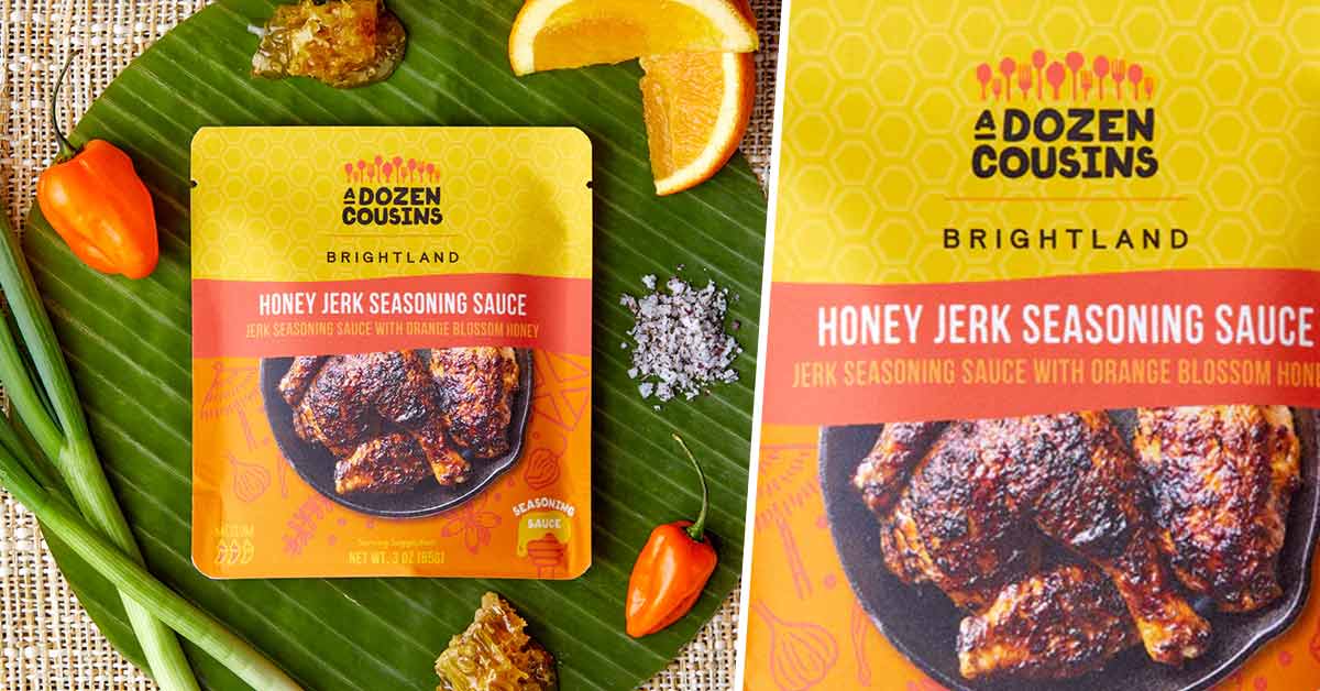 Pantry essentials brand Brightland has partnered with ready-to-eat seasoned meal maker A Dozen Cousins to drop a limited edition Honey Jerk Seasoning Sauce. The new condiment is made with a base of A Dozen Cousins’ Jamaican Jerk Seasoning blended with Brightland’s California Orange Blossom Honey. Just in time for grilling season, Honey Jerk Seasoning Sauce is available on A Dozen Cousins’ website for $24.99 per pack of 6 pouches and on Thrive Market for $2.99 per pouch.
