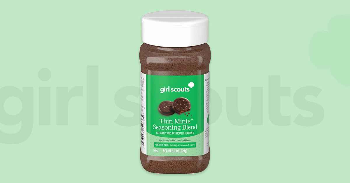 B & G Foods teamed up with Girl Scouts to turn a classic cookie flavor into a seasoning.. Featuring a combination of dark cocoa, mint flavor and fine cookie crumbles, the new Thin Mints Seasoning Blend is intended for use in recipes such as cinnamon buns, party dips and milkshakes. B & G Girl Scouts Thin Mints Seasoning Blend is now available at Sam’s Club stores.