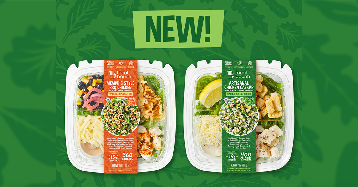 Indoor agriculture company Local Bounti has expanded its Grab & Go Salad Kit line to include antibiotic-free white meat chicken in two new recipes, Artisanal Chicken Caesar and Memphis Style BBQ Chicken. The former packs 19 grams of protein and features greenhouse-grown romaine, parmesan cheese, croutons and the brand’s Romano Ceasar dressing. The latter has 15 grams of protein and is crafted with corn and black bean salsa, pickled red onions, crispy fried onions, pepper jack cheese and BBQ ranch dressing. Local Bounti’s new salad kits will be available at select grocery stores in the Pacific Northwest starting this month.