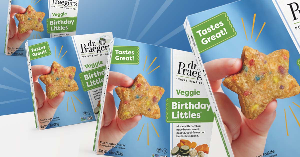 Dr. Praeger’s has released the newest flavor of its kids-centric line, Birthday Littles. The new flavor is made with zucchini, navy beans, sweet potato, cauliflower and butternut squash and vegan, dye-free natural sprinkles made by Supernatural. Dr. Praeger’s Birthday Littles are available at Target stores nationwide for $6.49.