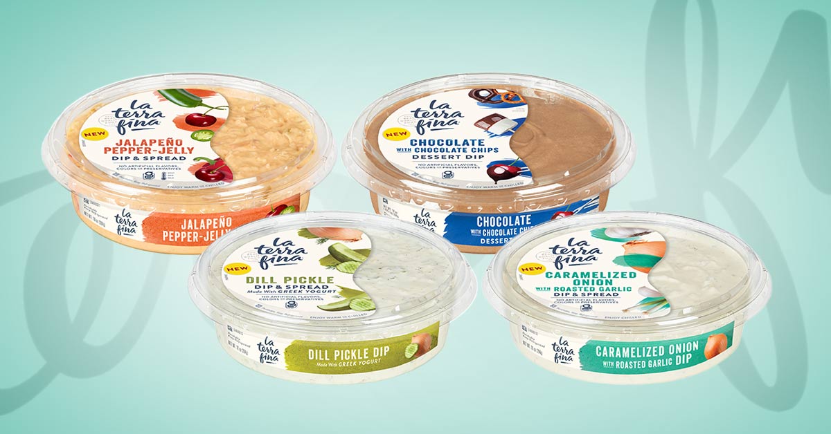 La Terra Fina is growing its lineup of premium dips and spreads with four new products: Chocolate with Chocolate Chips Dessert Dip, Dill Pickle Dip & Spread, Caramelized Onion with Roasted Garlic Dip & Spread and Jalapeño Hot Pepper Jelly Dip & Spread. The new products are available at retailers nationwide for a suggested retail price of $5.49 per 10 oz. tub.