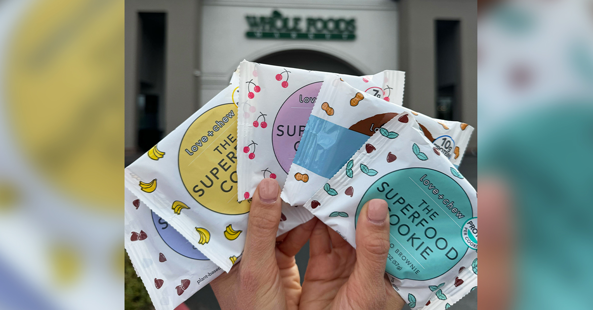 Plant-based superfood cookie producer Love + Chew is expanding from 177 to 500 Whole Foods Market locations nationwide. The natural retail chain carries five of the brand’s flavors: Chocolate Chia, Banana Bread, Cherry Almond, Mint Cacao Brownie, and high-protein Peanut Butter Chip for $2.99 per 2 oz. cookie.