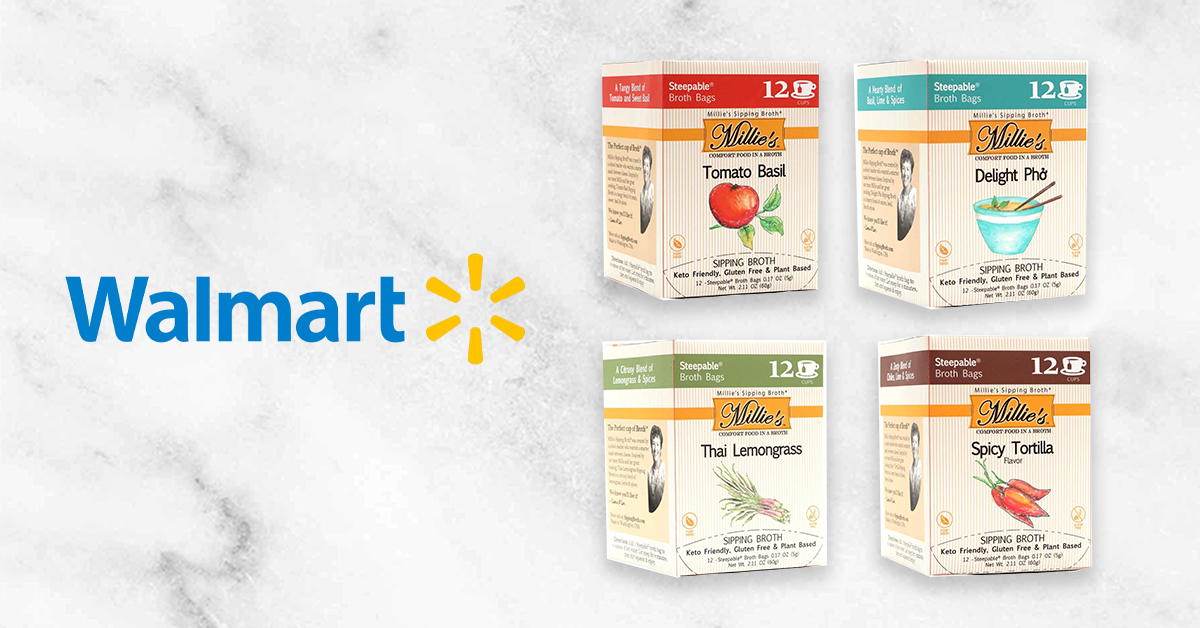 After securing a “golden ticket” at Walmart’s 10th annual Open Call event last year, Millie’s Sipping Broth – which claims to be the world’s first broth in a tea bag – has officially hit the shelves of nearly 2,000 Walmart locations.