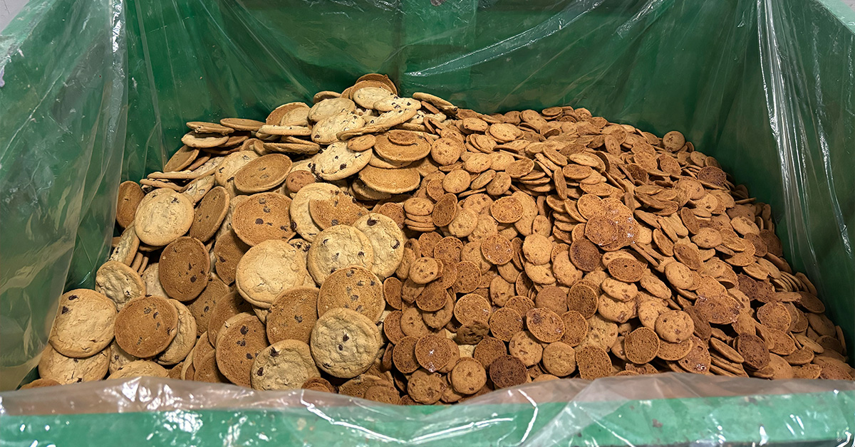 Additionally, the bakery partners with Weston, Mass.-based Vanguard Renewables to dispose of its inedible cookie waste (burnt, fallen on the floor, etc.), which is collected in a bin on the factory floor. Vanguard picks up the bin every one to two weeks, depending on the volume, and hauls it 60 miles away to a farm in Western Massachusetts. There, the waste is placed into an anaerobic digester and converted into biogas that powers the farm and nearby homes.