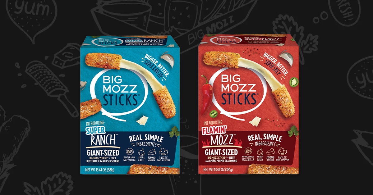 Big Mozz has expanded its lineup of frozen mozzarella sticks with two new flavors: Super Ranch and Flamin’ Mozz. The former, which features a buttermilk ranch coating, is available at Whole Foods Market stores nationwide. The latter, which features a “hot and bold coating that builds heat with every bite,” is available on the brand’s website. For more information, visit bigmozz.com.