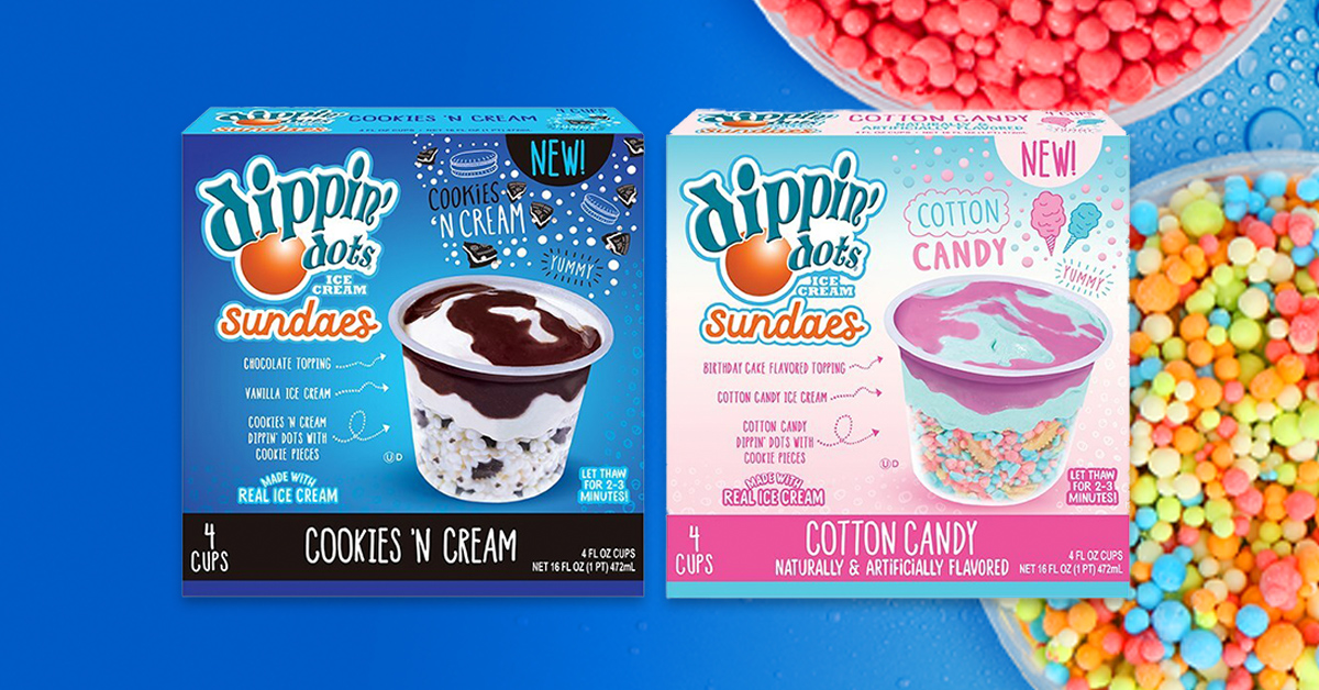 Beaded ice cream maker Dippin’ Dots has announced the upcoming launch of Dippin’ Dots Ice Cream Sundaes, marking the brand’s first expansion into the grocery freezer space. Available in two flavors at launch – Cookies ‘n Cream and Cotton Candy – each sundae cup features ice cream dots, cookie pieces, ice cream, and flavored sauce. Dippin’ Dots Ice Cream Sundaes will debut at Kroger in January 2025 with plans to roll out to additional retailers through the year. Each box (SRP $6.99) will include four 4 oz. sundae cups. For more information, visit dippindots.com.