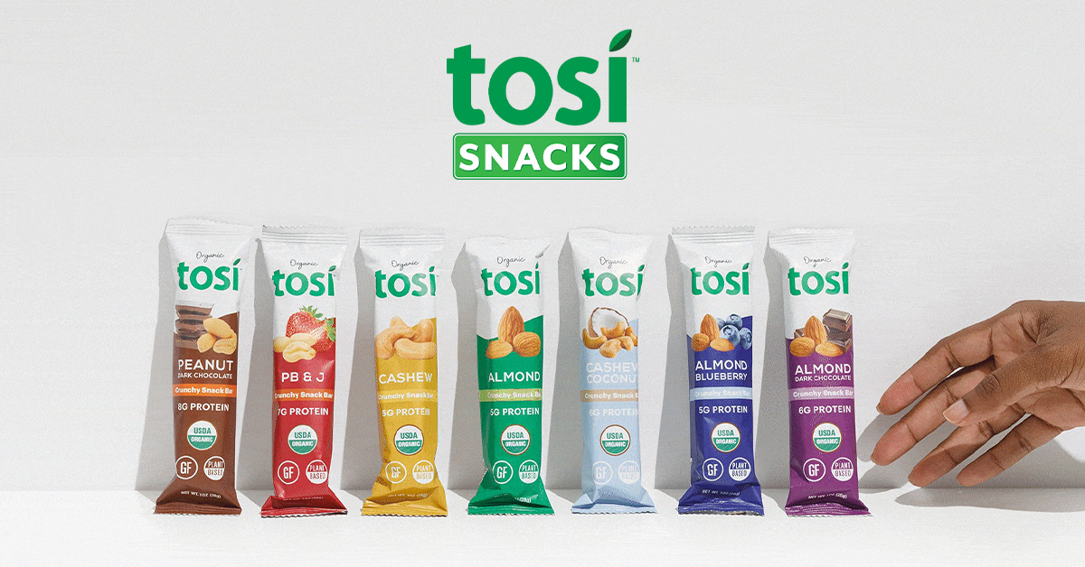 Founded in 2012, Tosi makes USDA Organic certified, gluten-free, vegan meal and snack bars and clusters sold in over 1,200 U.S. stores as well as in Dubai, Hong Kong and the Dominican Republic.