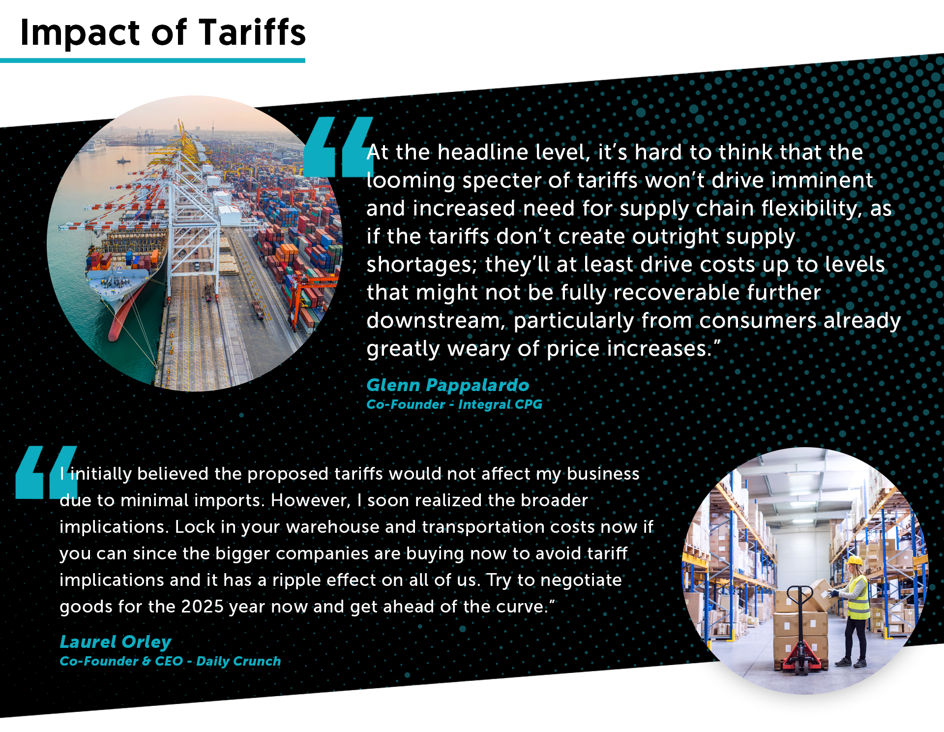 “At the headline level, it’s hard to think that the looming specter of tariffs won’t drive imminent and increased need for supply chain flexibility, as if the tariffs don’t create outright supply shortages; they’ll at least drive costs up to levels that might not be fully recoverable further downstream, particularly from consumers already greatly weary of price increases.” – Glenn Pappalardo, Co-Founder, Integral CPG