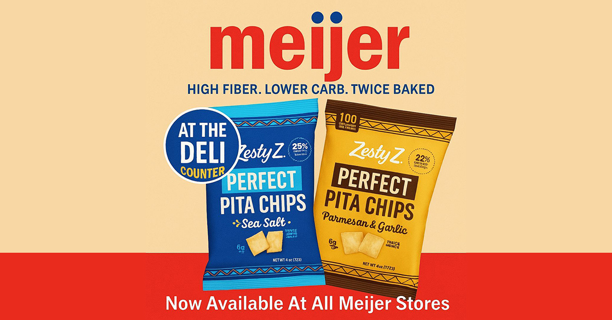 Zesty Z is introducing its Perfect Pita Chips in Sea Salt and Parmesan Garlic flavors to all 280 Meijer stores across the Midwest, per a LinkedIn announcement.