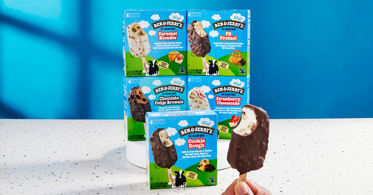Ben & Jerry’s has unveiled its newest innovation: Ice Cream Bars. Available in five flavors – Cookie Dough, Chocolate Fudge Brownie, Strawberry Cheesecake, PB Pretzel and Caramel Blondie – the frozen treats feature ice cream dipped in a chocolatey coating with cookie pieces. Ben & Jerry’s Ice Cream Bars will begin to hit freezer aisles in January 2026 in 4-packs. Learn more by visiting benjerry.com.