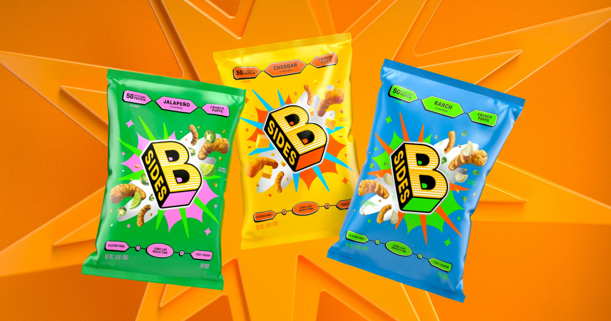 As Gen Z harnesses ‘90s era fashion with baggy clothes and neon hues, snack brands are taking a cue from the “golden era of snack culture” as well. Upcycled puffs brand B-Sides is bringing the noise with a packaging refresh that leans heavily on color and caters to that younger generation of better-for-you snackers.