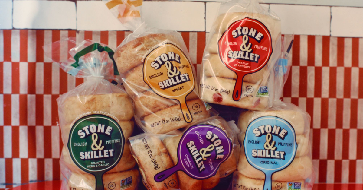 English muffin maker Stone & Skillet has refreshed its packaging as well. For the first time in its over 12-year history, the Boston-based business has changed its visual identity. The new branding brings a skillet illustration to the logo and adds brighter colors to differentiate flavors.