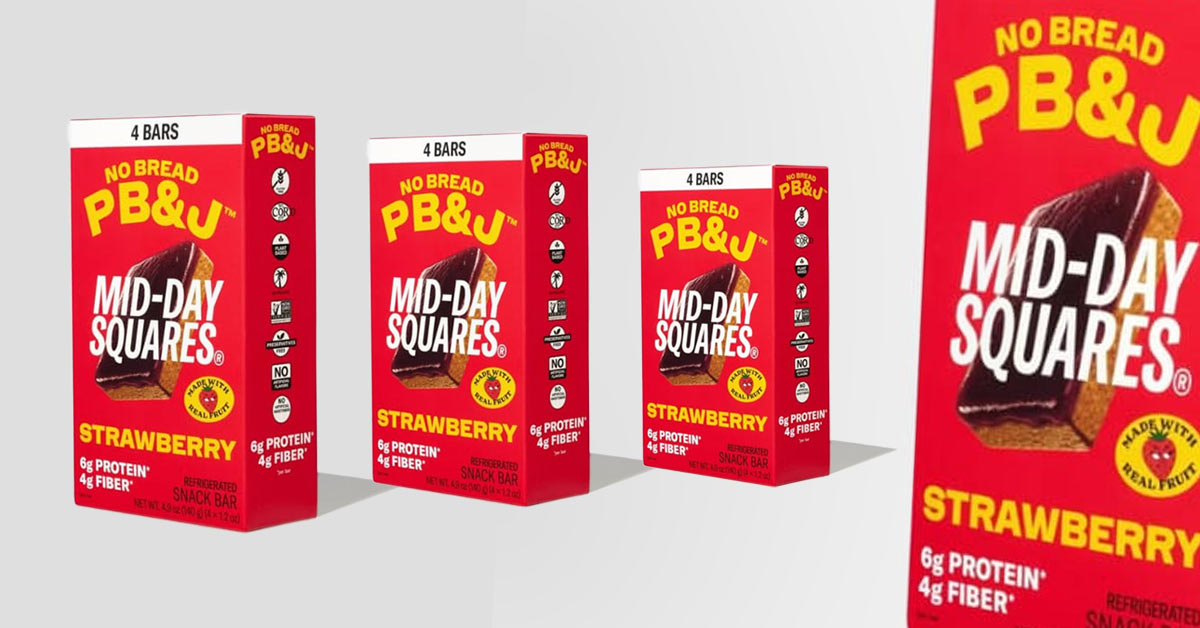 For its first non-chocolate-based innovation, Mid-Day Squares is turning to a childhood classic with a No Bread PB&J bar. Available in a Strawberry flavor at launch, No Bread PB&J is debuting this month in Target stores nationwide and will begin rolling out to all Mid-Day Squares accounts later this year, co-founder and co-CEO Nick Saltarelli said, with an expected SRP between $6.96 and $8.99 per 4-pack. Learn more by visiting middaysquares.com.