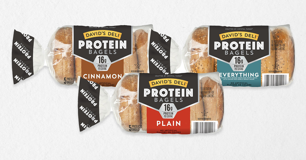 Crystal Farms Dairy Co. launched David’s Deli Protein Bagels in Plain, Cinnamon and Everything flavors. The bagels are made with a blend of wheat protein isolate and soy protein and contain 16 grams of protein. The products are available at Midwest grocers including Cub, Piggly Wiggly, Roundy’s and Festival Foods. For more information, go to davids-deli.com.