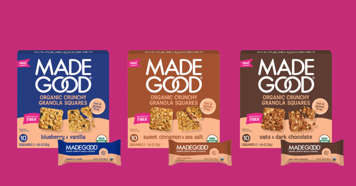 Allergy-friendly snack maker MadeGood has debuted a collection of Crunchy Granola Squares. Available in three flavors – Oats & Dark Chocolate, Sweet Cinnamon & Sea Salt and Blueberry & Vanilla – the new snack, which is a modern take on a crunchy oat bar, features 4 grams of fiber per serving and 25% less sugar than the leading crunchy granola bar brand, according to MadeGood. Crunchy Granola Squares are now available at retailers nationwide, including Target, Publix, Harris Teeter and Hy-Vee, among others. Learn more by visiting madegoodfoods.com.