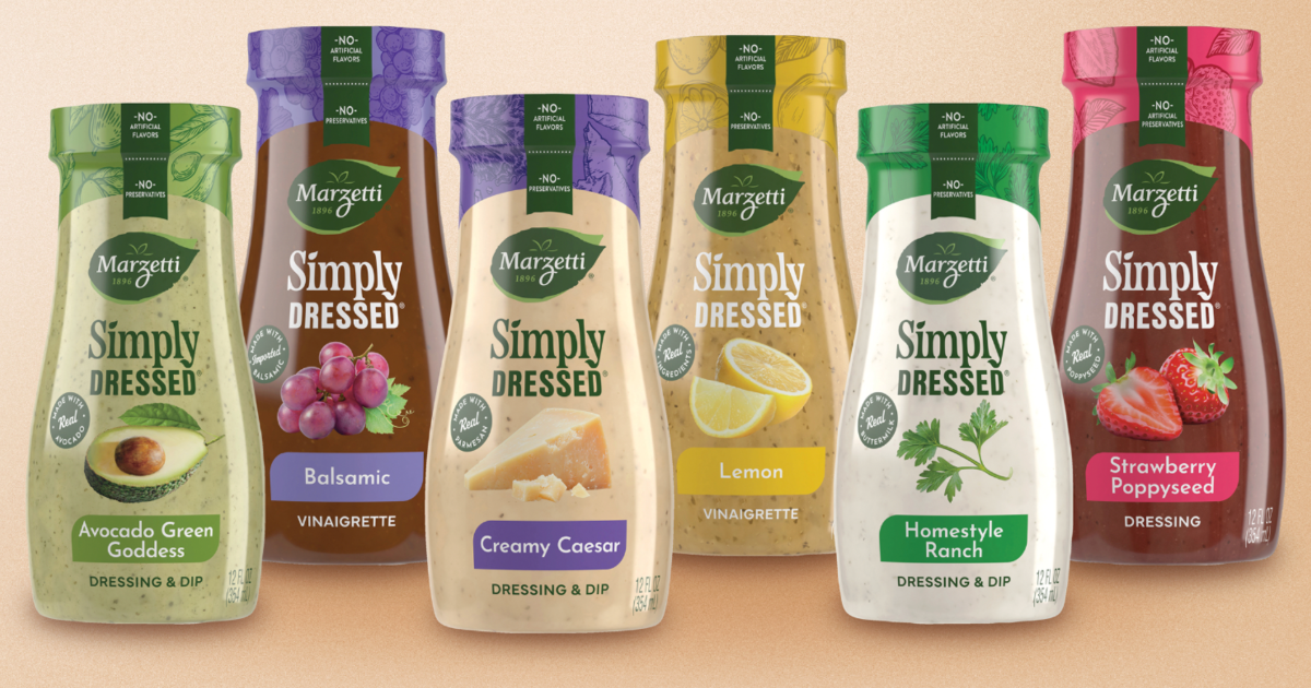 The Marzetti Company has introduced its Simply Dressed line of salad dressings, which it claims are “mindfully crafted around a purposeful ingredient list.” Available in six flavors – Avocado Green Goddess, Balsamic, Creamy Caesar, Lemon, Homestyle Ranch and Strawberry Poppyseed – the Simply Dressed line will soon be available on grocery store shelves nationwide, replacing the Marzetti Simply line. For more information, visit marzetticompany.com.